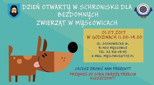 Już 1 lipca w godzinach 11.00 - 14.00 w schronisku dla bezdomnych zwierząt w Mysłowicach /ul. Sosnowiecka 16/ odbędzie się dzień otwarty.