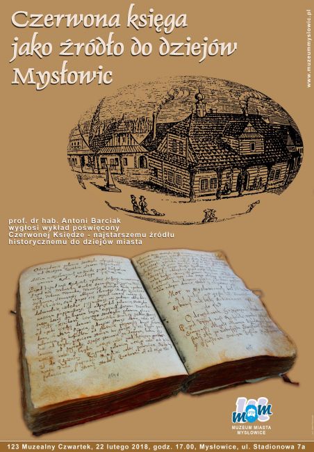 22 lutego br., godz. 17.00, odbędzie się 123. Muzealny Czwartek. Podczas spotkania wystąpi prof. dr hab. Antoni Barciak, który wygłosi wykład poświęcony Czerwonej Księdze Mysłowic - najstarszemu źródłu historycznemu do dziejów miasta Mysłowice. Profesor Barciak jest pracownikiem naukowym Uniwersytetu Śląskiego w Katowicach, specjalizuje się w historii średniowiecza oraz naukach pomocniczych historii, w swoim dorobku posiada liczne publikacje poświecone m.in. dziejom Śląska, pod jego redakcją także została opracowana Czerwona Księga Mysłowic.