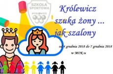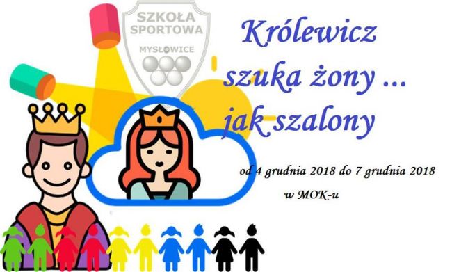 Serdecznie zapraszamy wszystkie dzieci wraz z opiekunami 6 grudnia, w czwartek, na godz. 16.00 lub na 18.00 do Mysłowickiego Ośrodka Kultury przy ul. Grunwaldzkiej 7 na przedstawienie bajkowe „Królewicz szuka żony... jak szalony” wraz ze spotkaniem ze Św. Mikołajem w wykonaniu uczniów Szkoły Sportowej w Mysłowicach. Zapewniamy wspaniałą zabawę z bajkowymi postaciami. Wstęp jest bezpłatny.