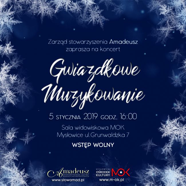 W programie kolędy polskie i zagraniczne oraz piosenki związane z Bożym Narodzeniem. Wystąpią uczniowie ognisk muzycznych Amadeusza z klas: fortepianu, skrzypiec, gitary, fletu poprzecznego i śpiewu.