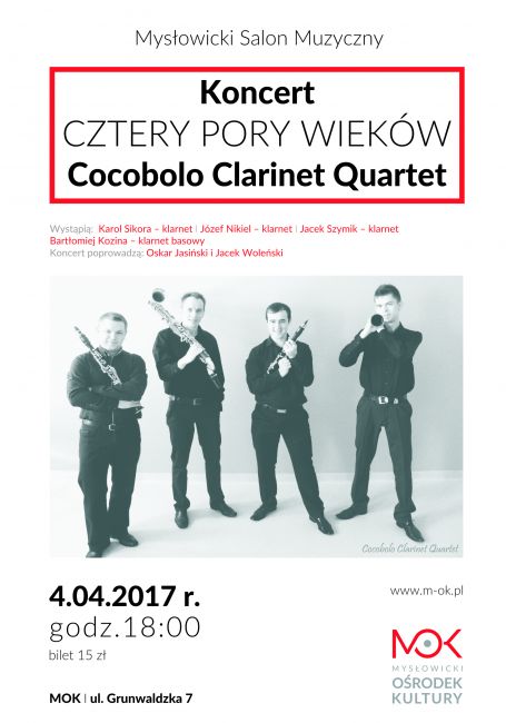 Skład kwartetu tworzą: Karol Sikora (klarnet), Józef Nikiel (klarnet), Jacek Szymik (klarnet), Bartłomiej Kozina (klarnet basowy). Koncert poprowadzą Oskar Jasiński i Jacek Woleński.