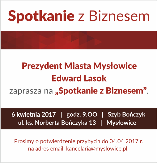Przedstawiciele mysłowickich firm spotkają się w Szybie Bończyk o godzinie 9.00. Tematami spotkania będą m.in. możliwości finansowania firmy, inwestowanie oraz reklama w przestrzeni miejskiej.