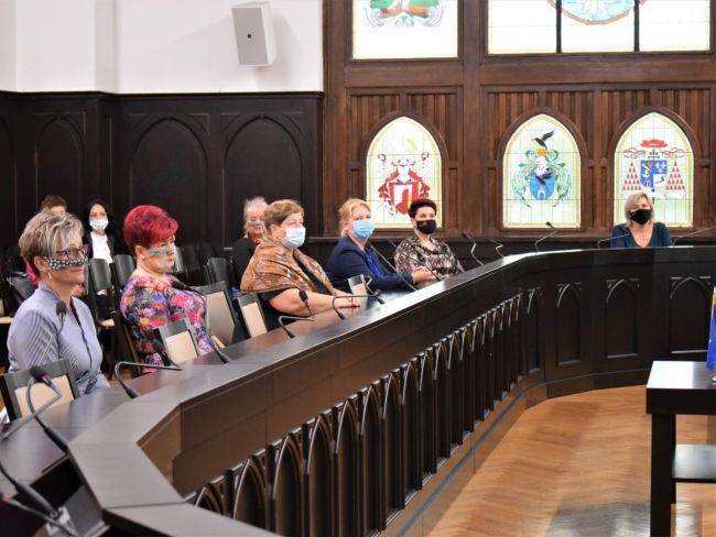 Do urzędu miasta zostali zaproszeni mysłowiccy pedagodzy, którzy otrzymali w tym roku szkolnym Nagrodę Ministra Edukacji, Nagrodę Śląskiego Kuratora Oświaty, Medal Komisji Edukacji Narodowej albo Nagrodę Prezydenta Miasta Mysłowice. Wraz z listami gratulacyjnymi i różami wręczali je prezydenci Dariusz Wójtowicz i Wojciech Chmiel. A jako że uroczystość odbyła się 13 października, nie zabrakło życzeń z okazji Dnia Edukacji Narodowej dla wszystkich pracowników oświaty.