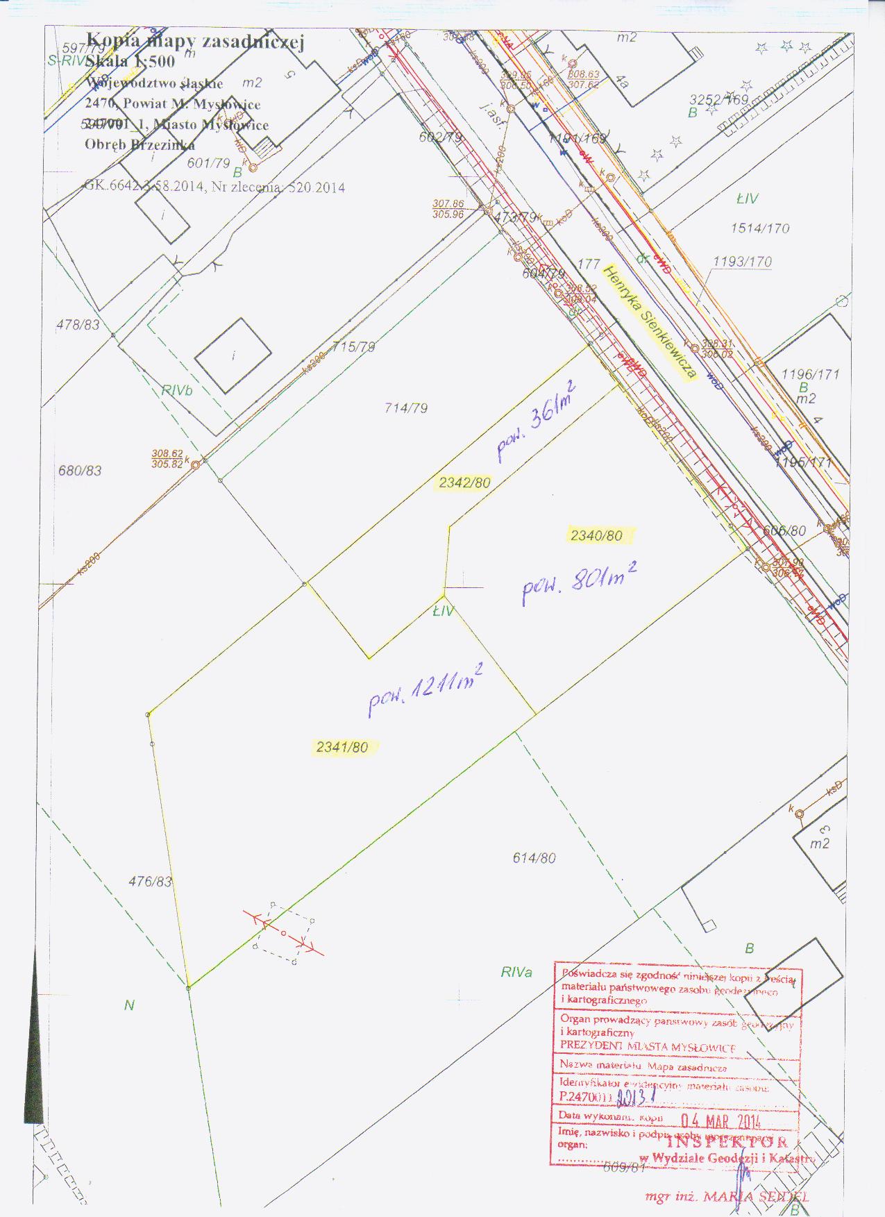 Przeprowadzone ustne przetargi nieograniczone na zbycie nin. nieruchomości tj. pierwszy przetarg w dniu 10.06.2014 r., drugi przetarg w dniu 23.09.2014 r., trzeci przetarg w dniu 10.03.2015 r., a czwarty przetarg w dniu 16.06.2015 r.zakończyły się wynikiem negatywnym. Zgodnie z uchwalonym przez Radę Miasta Mysłowice uchwałą nr LIV/557/2005 z dnia 24 listopada 2005 r. miejscowym planem zagospodarowania przestrzennego dzielnicy „Morgi Zachód” w Mysłowicach przedmiotowe działki posiadają przeznaczenie: MU II – tereny mieszkaniowo - usługowe - zabudowa jednorodzinna z dopuszczeniem usług. Ponadto we wschodniej części działek: nr 2340/80 i nr 2342/80 przebiega strefa ochronna sieci SN, a w zachodnio - południowej części działki nr 2341/80 przebiega strefa ochronna sieci 110 kV. Szczegółowe ustalenia warunków zagospodarowania terenu w obszarze stref ochronnych sieci infrastruktury technicznej, należy uzgadniać z zarządcami mediów dla których utworzono strefę.Zagospodarowanie nin. nieruchomości nastąpi na podstawie zapisów w/w planu miejscowego.