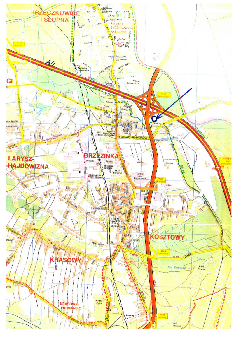 Nieruchomość niezabudowana, położona w Mysłowicach – Brzezince przy ul. Chrzanowskiej pomiędzy Nr 43, a Nr 47, przeznaczona pod zabudowę na cele zgodne z zapisami wyżej wym. miejscowego planu zagospodarowania przestrzennego. Zbywana działka posiada nieregularny kształt, porośnięta jest roślinnością trawiastą. Teren działki jest zróżnicowany ze spadkiem w kierunku południowym. Przedmiotowa działka pozostaje w oddziaływaniu węzła komunikacyjnego „Brzęczkowice" (autostrada A4 - droga krajowa S1). W południowo – wschodnim narożu działki przebiega sieci gazowa gn150. Nin. działka może być wykorzystana pod zabudowę z zastrzeżeniem, że projektowane obiekty budowlane nie mogą naruszać istniejącego uzbrojenia terenu i przy ich lokalizacji zostaną zachowane odpowiednie odległości od sieci. Nabywca zobowiązany będzie zapewnić właścicielowi sieci dostęp do sieci, celem przeprowadzenia konserwacji lub usunięcia awarii. W przypadku gdyby jednak, projektowana zabudowa kolidowała z przebiegającą siecią, nabywca zobowiązany będzie we własnym zakresie i na własny koszt dokonać przełożenia sieci, po uzgodnieniu z właścicielem sieci. Obsługa komunikacyjna zbywanej nieruchomości będzie się odbywać z drogi publicznej ulicy Chrzanowskiej - lokalizację zjazdu nabywca uzgodni z zarządcą drogi w odrębnym postępowaniu.
