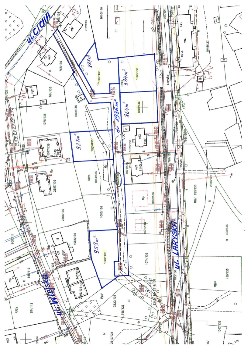 Zbywane działki posiadają regularny kształt, za wyjątkiem działki nr 1067/136, porośnięte są zielenią niską i częściowo wysoką (samosiejkami i pojedynczymi drzewami). Przez działki nr: 1068/136 i 1069/136 przebiegają dwa kable teletechniczne podziemne, a przez działkę nr 1068/136 dodatkowo kabel energetyczny, który przebiega również w pobliżu południowej granicy działki nr 1069/136 (poza działką). Przedmiotowe działki mogą być wykorzystane pod zabudowę z zastrzeżeniem, że projektowane obiekty budowlane nie mogą naruszać istniejącego uzbrojenia podziemnego terenu i przy ich lokalizacji zostaną zachowane odpowiednie odległości od sieci. W przypadku, gdyby jednak projektowana zabudowa kolidowała z przebiegającymi sieciami, nabywcy zobowiązani będą we własnym zakresie i na własny koszt dokonać przełożenia sieci, po uzgodnieniu z ich gestorami (realizacja zabudowy mieszkaniowej na działce nr 1068/136 ewidentnie wymaga przebudowy istniejącej sieci teletechnicznej – zgodnie z uzyskaną opinią Orange Polska z dnia 21.11.2018 r., ewentualna zmiana lokalizacji przebiegu tych urządzeń może zostać zrealizowana nakładem i staraniem wnioskodawcy, po uprzednim wystąpieniu o wydanie warunków technicznych). Nabywcy nin. działek zobowiązani będą zapewnić właścicielom sieci dostęp do sieci, celem przeprowadzenia konserwacji lub usunięcia awarii. W 2014 r. na odcinku od ul. Cichej do ul. Laryskiej, została wybudowana nowa kanalizacja deszczowa z włączeniem do istniejącej kanalizacji w ul. Laryskiej. Kanalizacja ta została wybudowana m.in. na działce nr 1076/136, stanowiącej wewnętrzną drogę dojazdową do w/w działek (istnieje możliwość włączenia drenażu do nowo wybudowanej na działce nr 1076/136 kanalizacji deszczowej, celem odbioru wód opadowych z powierzchni nin. działek). Współwłaściciele działki drogowej nr 1076/136, zobowiązani będą zapewnić właścicielowi sieci kanalizacyjnej dostęp do tej sieci, celem przeprowadzenia konserwacji lub usunięcia awarii.