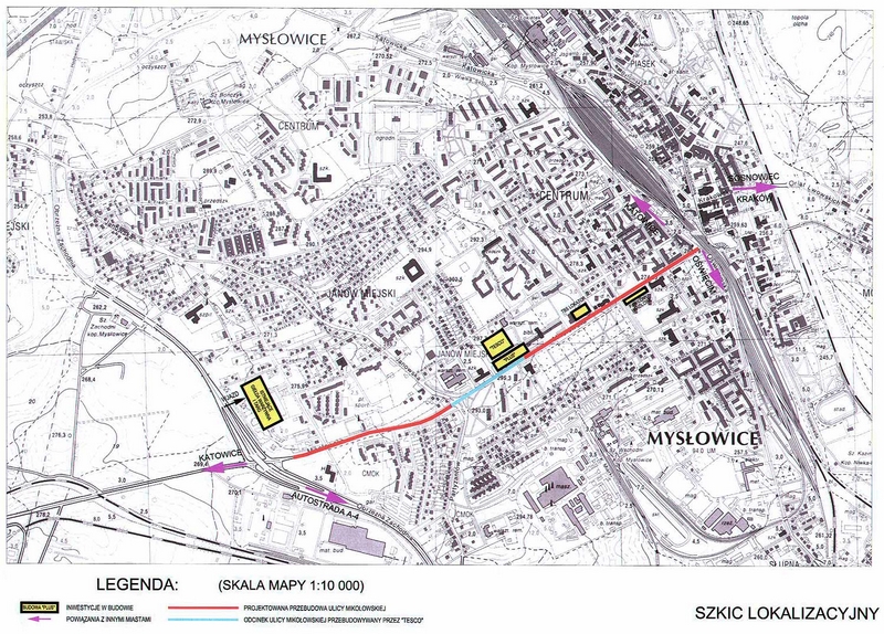 - przebudowa skrzyżowania Mikołowskiej z ul. Oświęcimska wraz z budową sygnalizacji świetlnej akomodacyjnej zsynchronizowanej z sygnalizacją na skrzyżowaniu ulic Oświęcimskiej, Katowickiej i Krakowskiej,