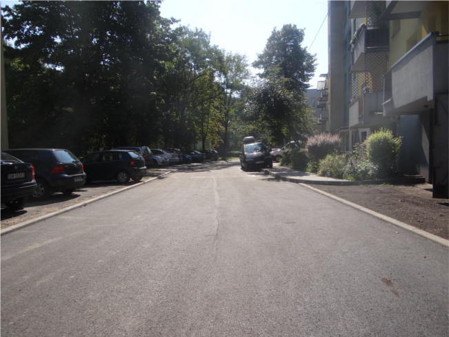 Wykonawca położył nową nawierzchnię od wjazdu na ul. Morcinka do budynku nr 6, wyregulował studnie, wybudował nowe wjazdy oraz krawężniki. Ponadto w ramach zadania umocnione zostały skarpy i pobocza.
