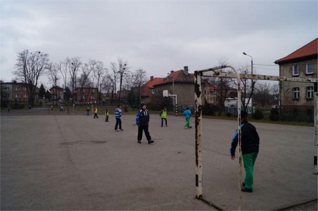 Nowe boisko wyposażone zostało również w niezbędny sprzęt, taki jak: bramki czy siatkę do gry w siatkówkę.