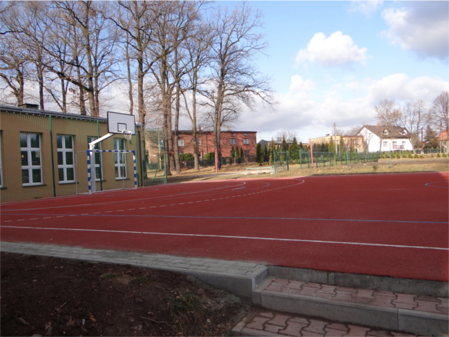 Uczniowie Gimnazjum nr 6 na nowym boisku zagrają w piłkę ręczną i koszykówkę. Oprócz nowej nawierzchni boisko wyposażone zostało w niezbędny sprzęt, taki jak: bramki czy kosze z tablicami.