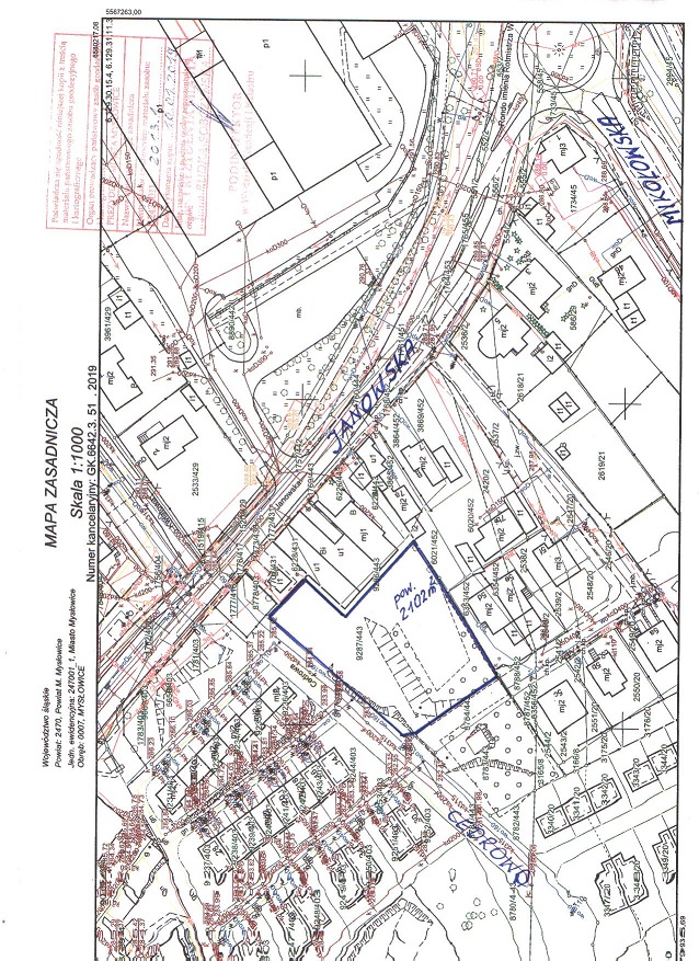 Prezydent Miasta Mysłowice ogłasza ustny przetarg nieograniczony na sprzedaż nieruchomości niezabudowanej, stanowiącej własność Gminy Mysłowice, położonej w Mysłowicach przy ul. Cedrowej, obejmującej działkę nr 9287/443 o pow. 2102 m2 na karcie mapy 3 obrębu 0007 Mysłowice, zapisanej w księdze wieczystej nr KA1L/00011391/0 Sądu Rejonowego w Mysłowicach, z przeznaczeniem pod zabudowę mieszkaniową lub mieszkaniowo - usługową. Nin. działka nie posiada opracowanego miejscowego planu zagospodarowania przestrzennego, a w obowiązującym Studium Uwarunkowań i Kierunków Zagospodarowania Przestrzennego Miasta Mysłowice, uchwalonym przez Radę Miasta Mysłowice uchwałą Nr XXX/656/08 z dnia 30 października 2008 roku, położona jest w strefie ozn. symbolem E.8.MWU – tereny zabudowy mieszanej: mieszkaniowej wielorodzinnej i usług rangi ogólnomiejskiej (dopuszczalne kierunki przeznaczenia terenu w Studium - m.in. zabudowa mieszkaniowa jednorodzinna). Zagospodarowanie nieruchomości nastąpi na podstawie szczegółowych warunków, które zostaną określone w decyzji o warunkach zabudowy, wydanej na wniosek nabywcy. W/w działka znajduje się na obszarze terenu górniczego, w związku z czym przy ustalaniu warunków zabudowy, konieczne będzie uzyskanie stanowiska właściwego państwowego organu nadzoru górniczego.