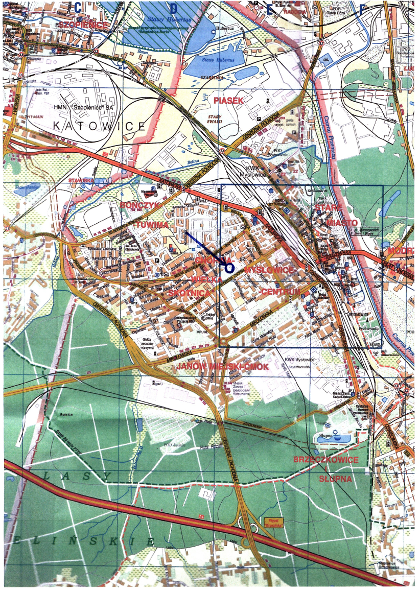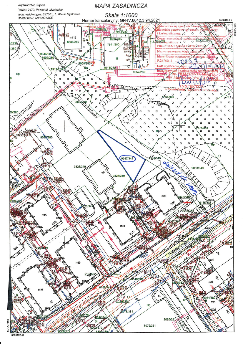 1. Zbywana działka nr 9347/349 jest niezabudowana, położona w Mysłowicach w rejonie ul. Fryderyka Chopina, przeznaczona do sprzedaży na cele zgodne z zapisami wyżej wym. Studium. Nin. działka posiada kształt nieregularny zbliżony do trójkąta. Obsługa komunikacyjna zbywanej nieruchomości będzie się odbywać poprzez wewnętrzną drogę gminną na działce 9348/349, 9048/348 do ulicy Fryderyka Chopina. Lokalizację zjazdu nabywca uzgodni z zarządcą drogi w odrębnym postępowaniu. Obecnie działka nie posiada fizycznego dostępu do ul. Chopina. W dniu 12 lipca 2021 r. została wydana przez Prezydenta Miasta Mysłowice decyzja Nr 247/2021 zatwierdzająca projekt budowlany i udzielająca pozwolenia na budowę wewnętrznej drogi dojazdowej wraz z infrastrukturą towarzyszącą m.in. na działkach nr: 9348/349, 9048/348.