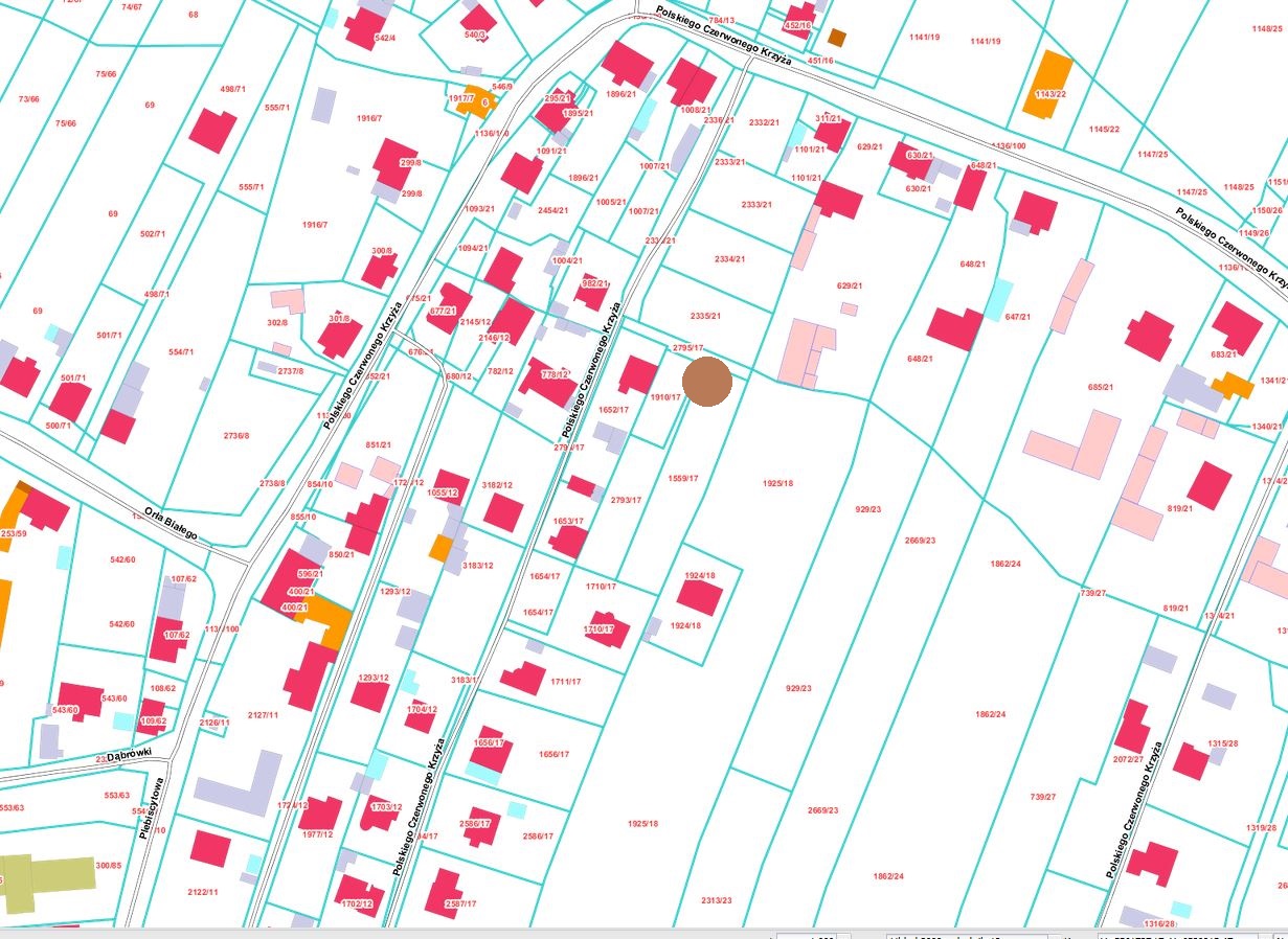 Charakterystyka: Nieruchomość niezabudowana położona w Mysłowicach w rejonie ulicy Polskiego Czerwonego Krzyża. W skład nieruchomości wchodzą działki o numerach geodezyjnych: 1910/17 o pow. 381 m2; 2793/17 o pow. 731 m2; 2795/17 o pow. 193 m2, gdzie łączna powierzchnia wynosi 1305 m2, położona na arkuszu mapy 1 obrębu 0005 Krasowy. W drodze dostępna jest woda, energia elektryczna, kanalizacja, gaz oraz sieć telekomunikacyjna. Działki 2793/17 i 1910/17 porośnięte są trawa, nieutwardzone a teren działek jest równy. Działka 2795/17 jest obecnie drogą nieutwardzoną.