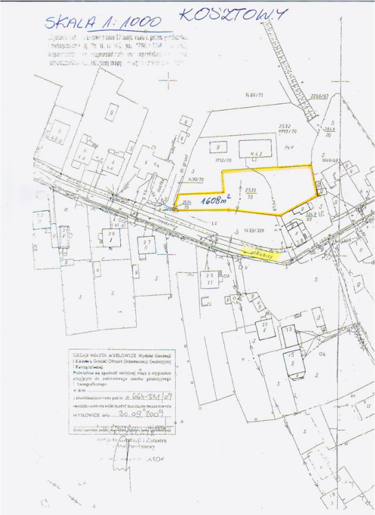 - W skład nieruchomości wchodzi działka nr 2533/70 o pow. 1.608 m2, na karcie mapy 3 obrębu Kosztowy, zapisana w księdze wieczystej KW 26501 Sądu Rejonowego w Mysłowicach, z przeznaczeniem pod zabudowę mieszkaniową jednorodzinną.